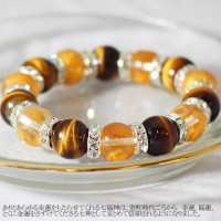 【SALE】七福神 タイガーアイ×水晶12mm 彫刻 ブレスレット