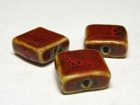 陶器ビーズ連□スクエア 約16×6mm 赤