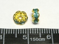 カラーロンデル 波ロンデル アクセサリーパーツ ゴールド×アクアマリンカラー 約6mm (約100個セット) ブルー 青 金 ラインストーン スペーサー
