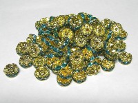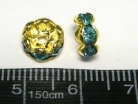カラーロンデル 波ロンデル アクセサリーパーツ ゴールド×アクアマリンカラー 約8mm (約100個セット) ブルー 青 金 ラインストーン スペーサー