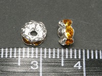 カラーロンデル 波ロンデル アクセサリーパーツ 古代銀×トパーズカラー 約6mm (約100個セット) イエロー 黄 シルバー ラインストーン スペーサー