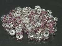 カラーロンデル 波ロンデル アクセサリーパーツ 古代銀×ローズカラー 約8mm (約100個セット) ピンク 桃 シルバー ラインストーン スペーサー