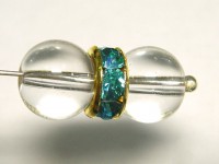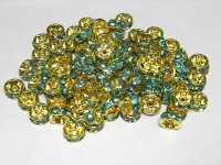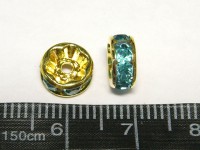カラーロンデル 平ロンデル アクセサリーパーツ ゴールド×アクアマリンカラー 約8mm (約100個入り) ブルー 青 金 ラインストーン スペーサー
