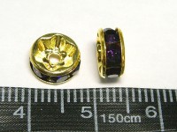 カラーロンデル 平ロンデル アクセサリーパーツ ゴールド×アメジストカラー 約8mm (約100個入り) パープル 紫 金 ラインストーン スペーサー