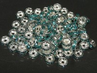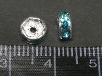 カラーロンデル 平ロンデル アクセサリーパーツ 古代銀×アクアマリンカラー 約6mm (約100個入り) ブルー 青 シルバー ラインストーン スペーサー