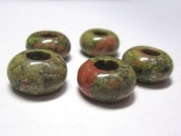大穴ビーズ ユナカイト 約14×7mm 穴約5mm 【5個】 アクセサリーパーツ パワーストーン